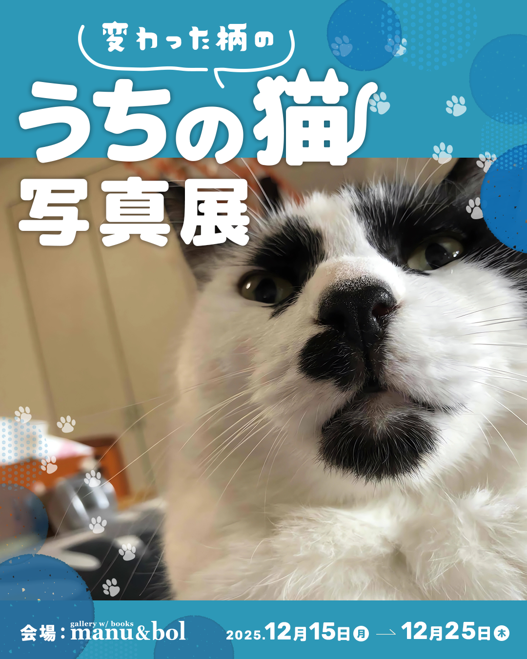 さらに今回はさらに今回はもう1つの猫の写真展「変わった柄のうちの猫 写真展」も同時開催いたします。今年の夏、manu&bol公式Instagramで開催したフォトコンテストに入賞された皆様の愛猫ちゃんたちの写真展です。下町に暮らしていた猫たちと柄猫たちの姿をぜひ見に来てください!